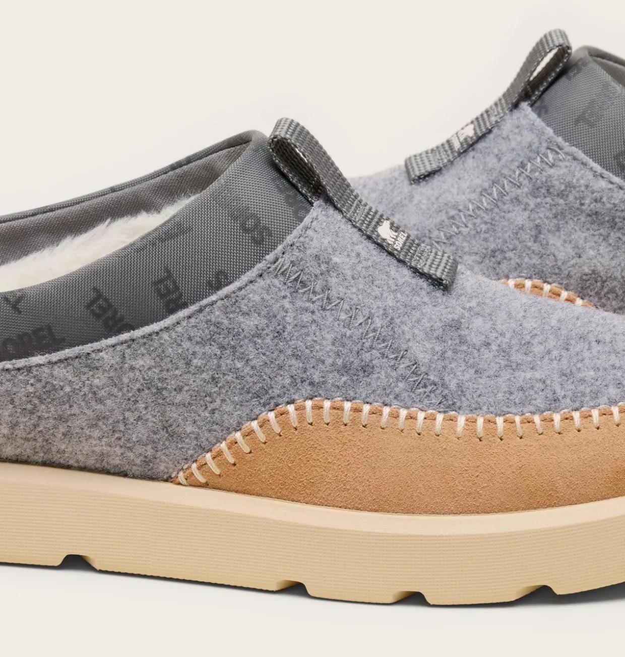 - UPPER: Felt upper with suede mudguard and crafted stitch. Repeat SOREL gloss print logo in collar. Faux fur lined.