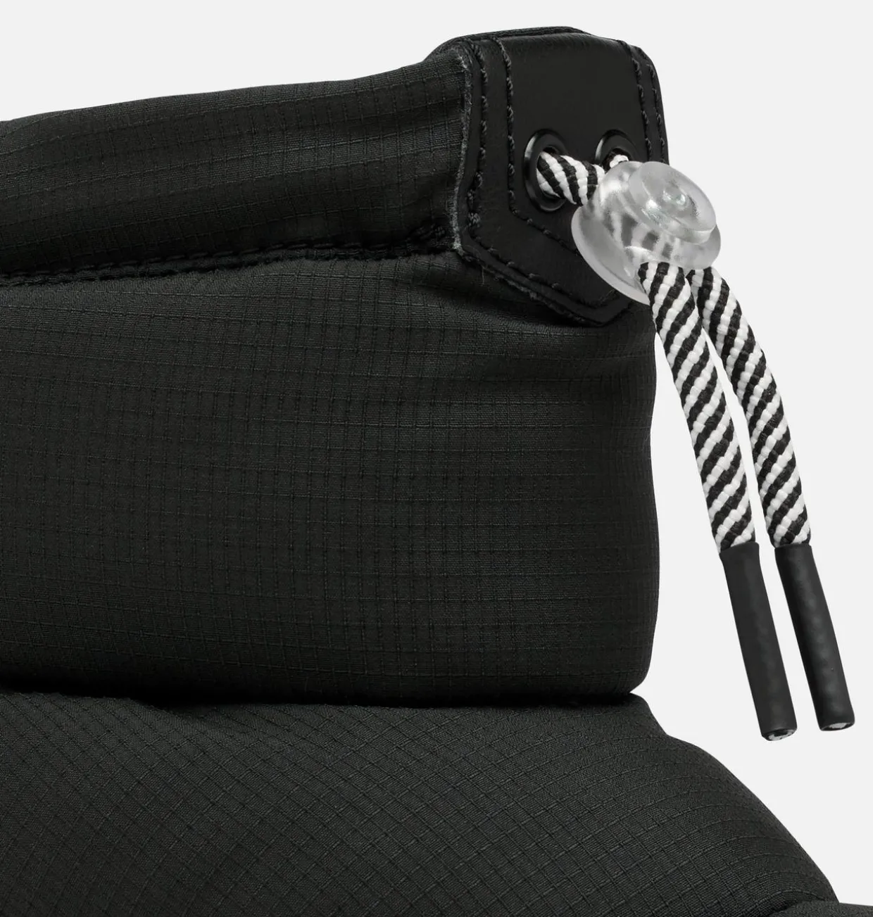 - UPPER: Waterproof textile upper. Synthetic overlays. Adjustable drawstring with toggle closure. Heel overlay. Waterproof bootie construction. Laces are not waterproof.